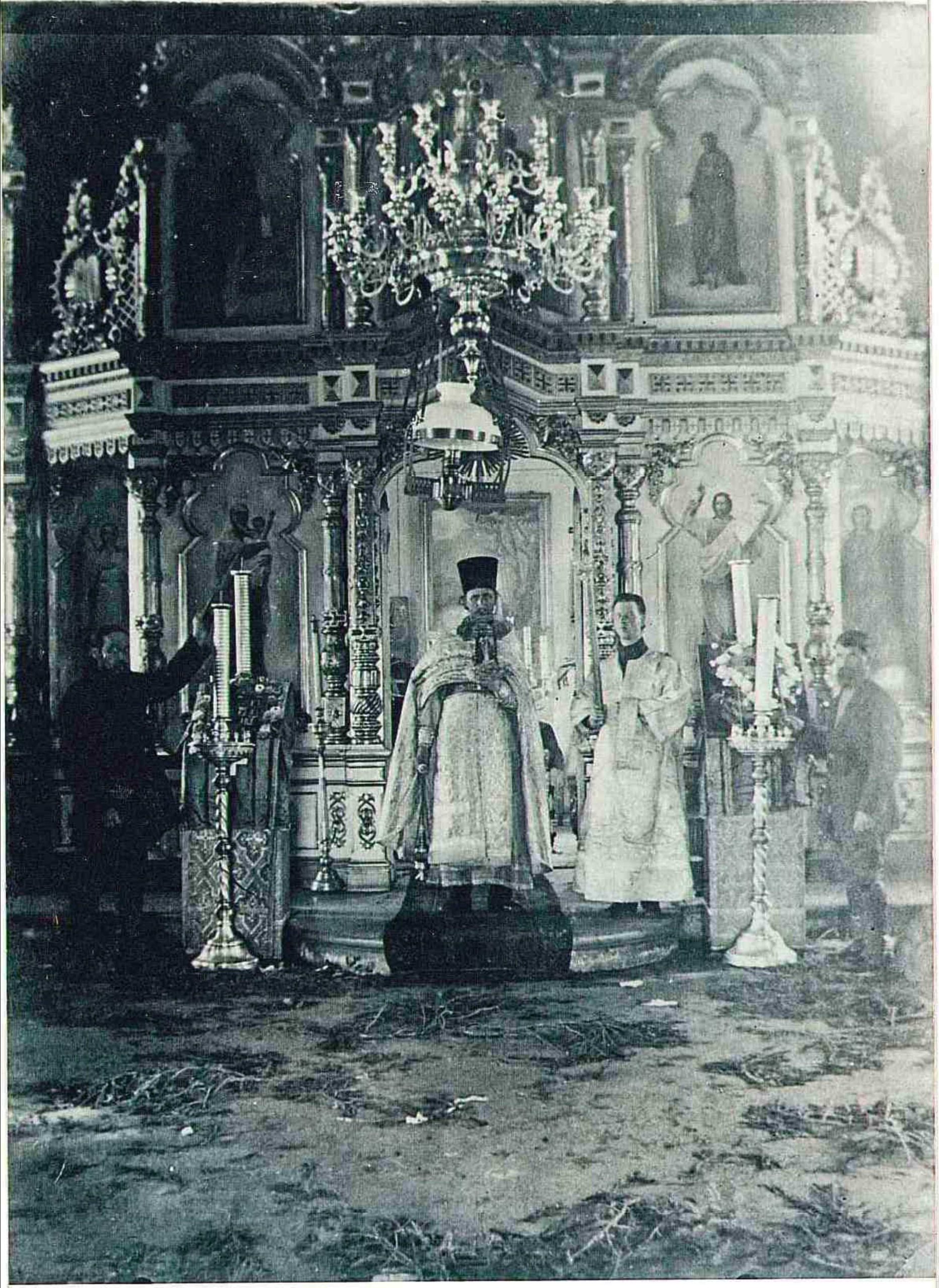 Большой удачей стала обнаруженная случайно в 2021 г. у местного жителя фотография еще одного иконостаса. При рассмотрении фото сразу бросилось в глаза, что множество фрагментов резьбы иконостаса – те самые, что хранятся в фондах нашего музея (в процессе дальнейшего изучения фото удалось опознать более 70 единиц). На вопрос, что за церковь на фото, был получен ответ, что это Симеоновская (новокладбищенская) церковь. Откуда эти сведения и какого времени изображение, пояснить владелец фотографии не смог, однако информация была взята в работу. В процессе выявилось, что это действительно иконостас Симеоновской церкви г. Соликамска, которая была закрыта в 1947 году, а имущество ее передано приходу открывшейся вместо нее Богоявленской церкви [2, л. 79]. Очевидно, иконостас