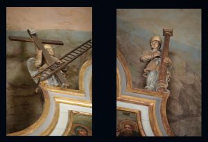 Полностью сохранилась окраска скульптуры «Ангел трубящий». Храмовая скульптура раскрашивалась по подобию человека: на щеках ангела наведен легкий румянец, глаза и брови детально прописаны, а одежды позолочены.