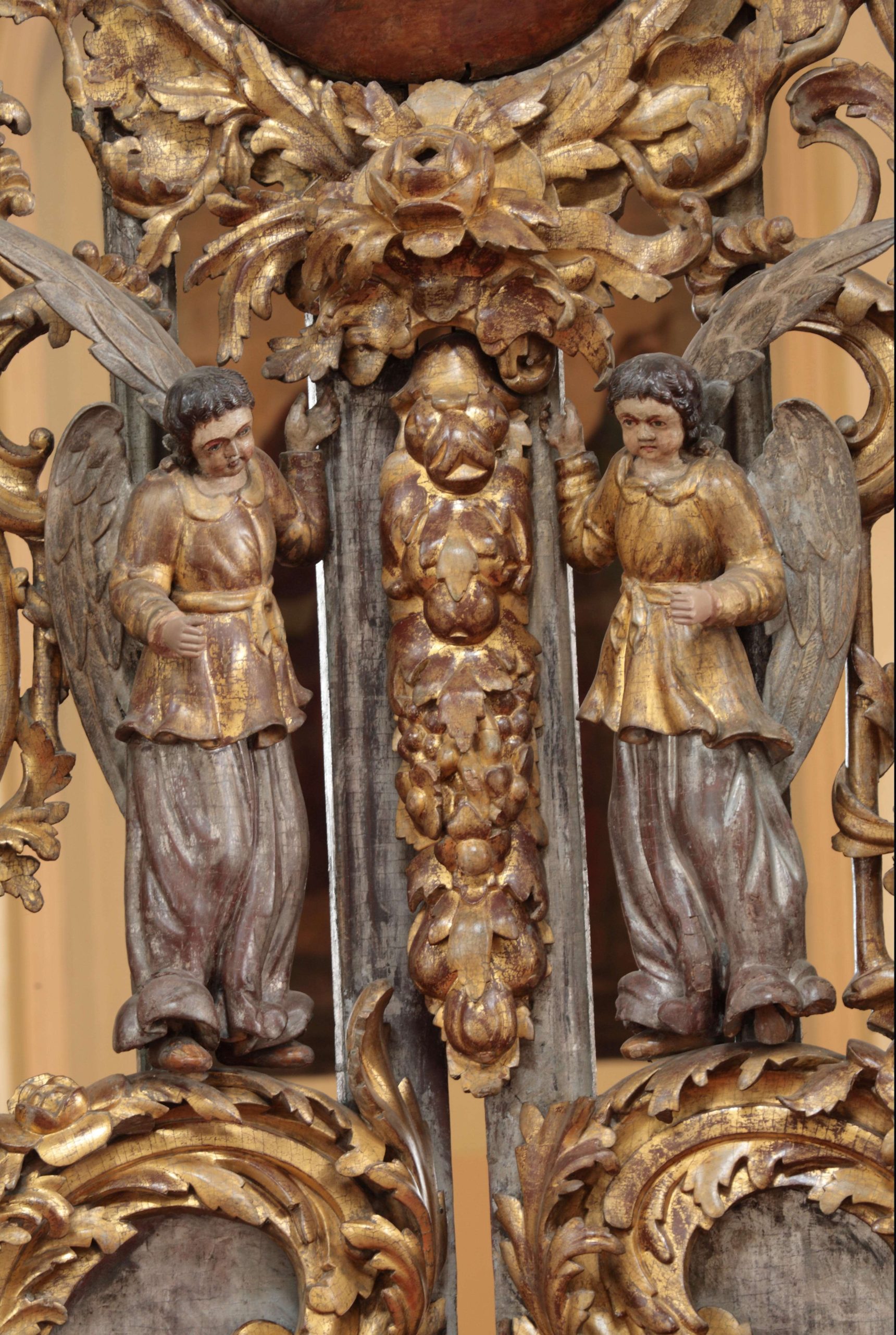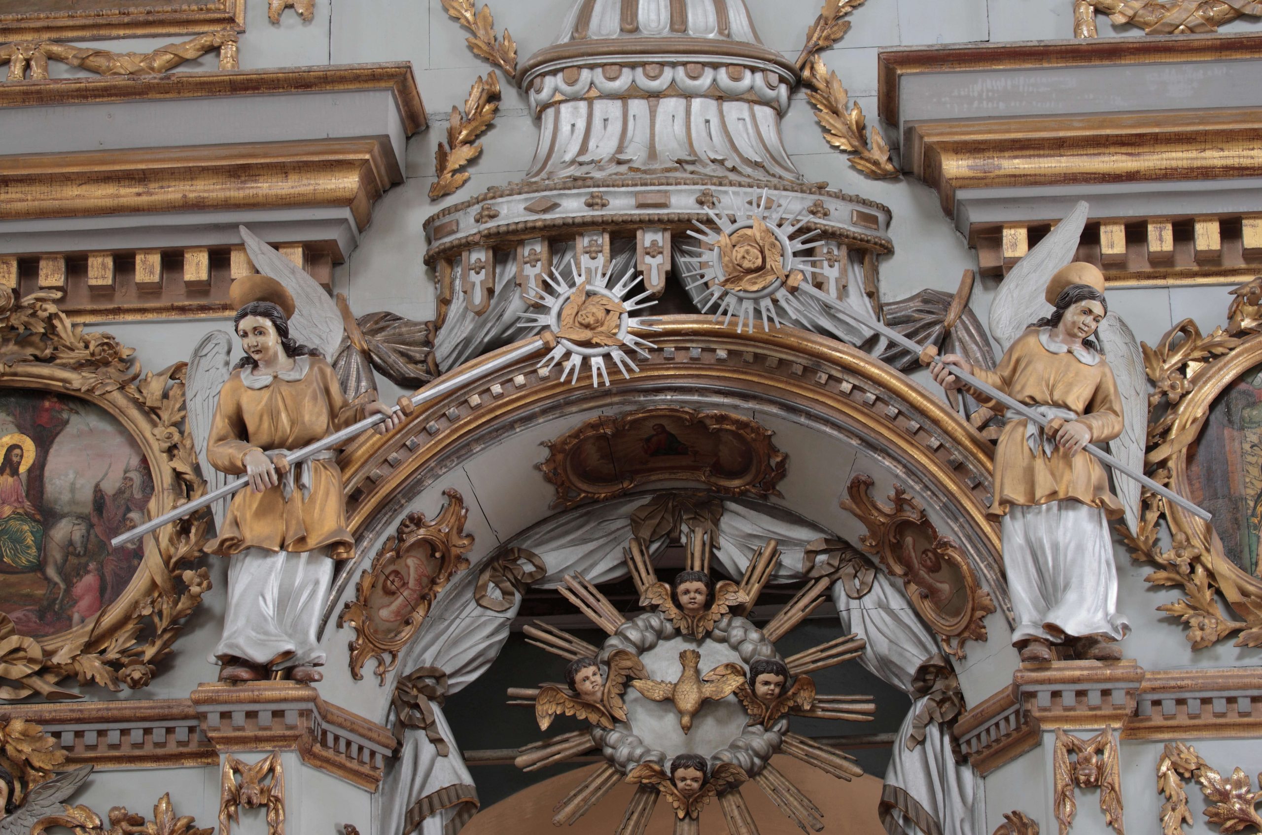 Полностью сохранилась окраска скульптуры «Ангел трубящий». Храмовая скульптура раскрашивалась по подобию человека: на щеках ангела наведен легкий румянец, глаза и брови детально прописаны, а одежды позолочены.