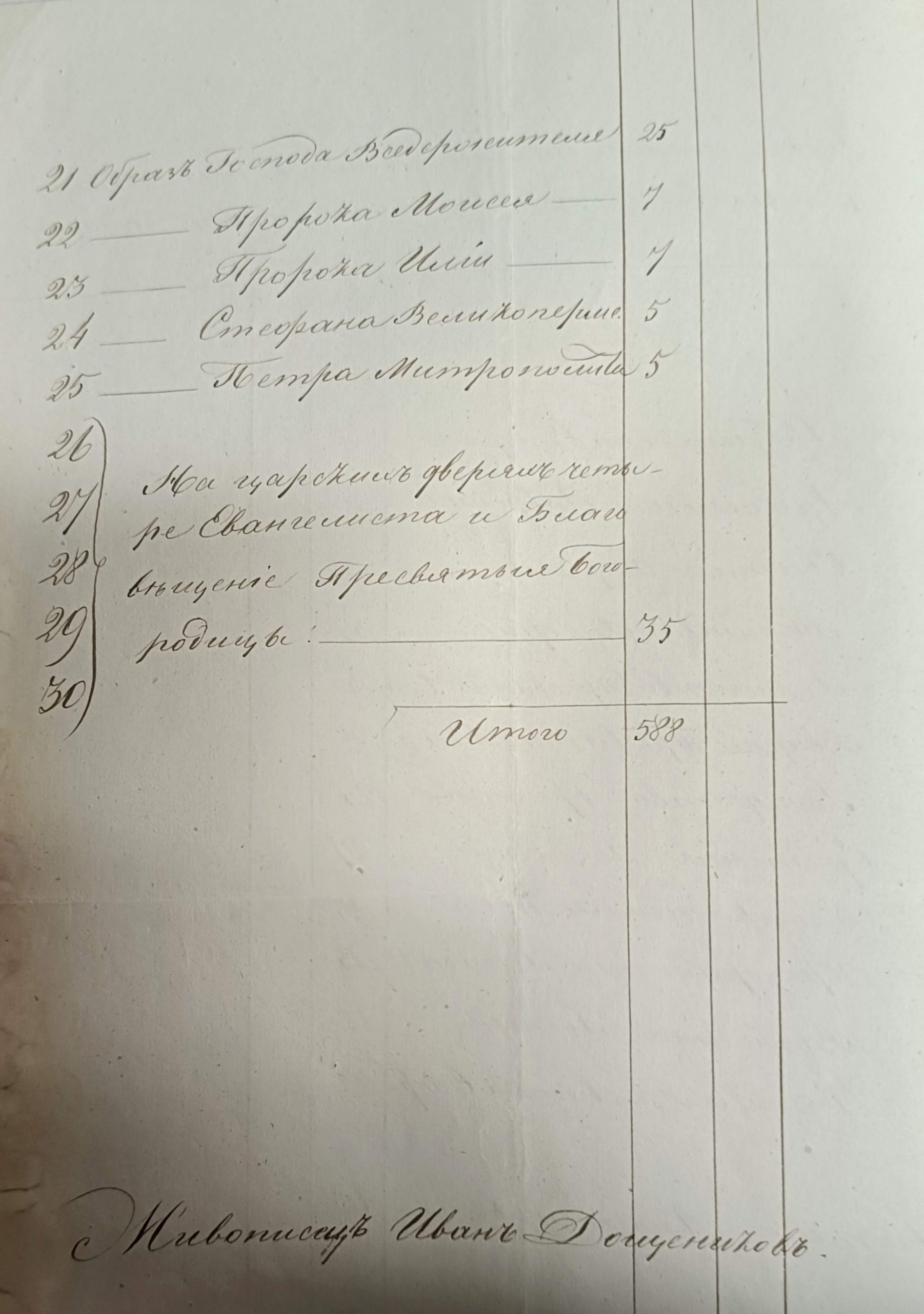 26, 27, 28, 29, 30. На царских дверях четыре евангелиста и Благовещение Пресвятой Богородицы – 35 руб.