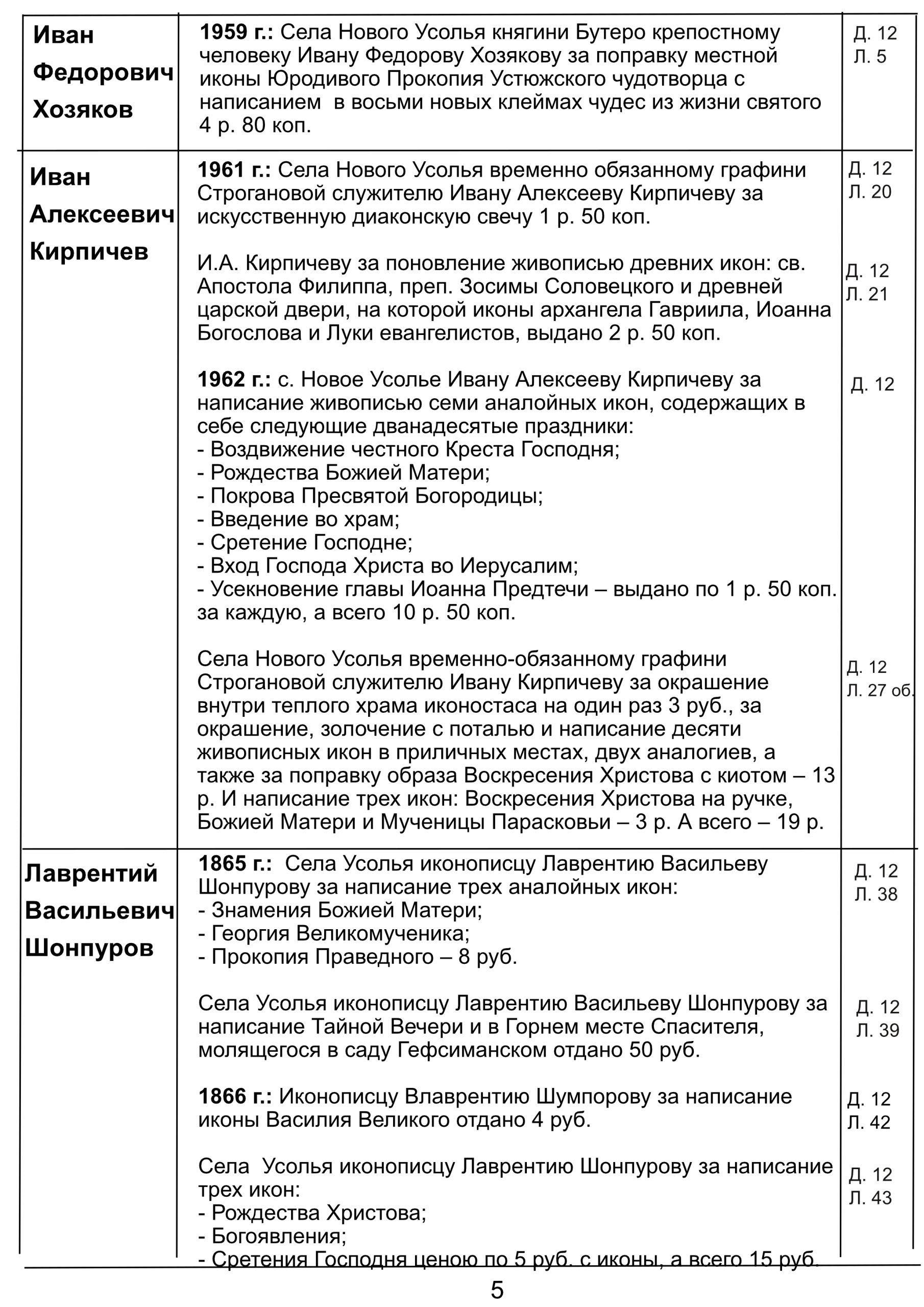 — Иван Яковлевич Литвинов – «с. Нового Усолья иконописец» (1846 – 1847 гг.);
