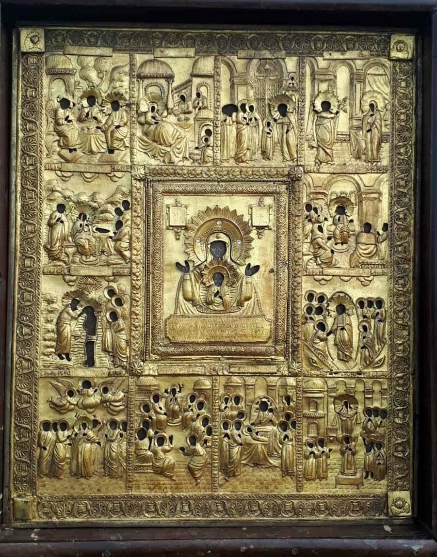 Зафиксировны записи об изготовлении драгоценных окладов на местные образа в иконостасе. Еще в 1803 году дочерью солдата Соликамской штатной команды Иуды Петровича Катугина, девицей Агафьей было приложено к явленной иконе Божией Матери «Знамение» 12 аметистовых камней, один бриллиантовый, один опаловый и один тумпаковый. Все означенные камни были вставлены в оклад иконы, что видно из документа 1875 г. В 1830 году Нижегородской губернии мастером золотых дел Калистратом Никифоровичем Чернышевым была изготовлена серебряная золоченая риза к этой иконе, которая сохранилась по сей день. На нее было употреблено церковное и «приложенное» прихожанами серебро весом 10 фунтов и 5 золотников, с добавлением собственного мастера серебра (3 ф. 12 зол.) и золота. Стоимость работ обошлась в 980 рублей, часть суммы пожертвована была протоиереем Федором Любимовым. В 1856 г. крестьянин г-на Кушникова Владимирской губ. Вязниковского уезда с. Ставрова, мастер серебряных дел Федор Никитич Нестеров чистил ризу и вставлял «отпаденные» венцы. А в 1908 г. ее поправлял и золотил мастер Иван Корнилович Столбов. В 1840 г. на соликамском рынке у Александра Кухтина была куплена для неугасимой свечи перед иконой медная посеребренная лампадка.